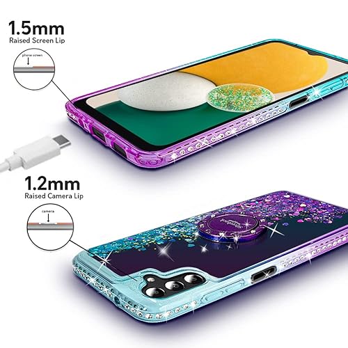 Miss Arts Custodia per Galaxy A14 5G, [Silverback] Custodia protettiva sottile olografica con glitter e cavalletto, per ragazze e donne Bling Diamond Ring Slim per Samsung Galaxy A14 5G, colore: Viola
