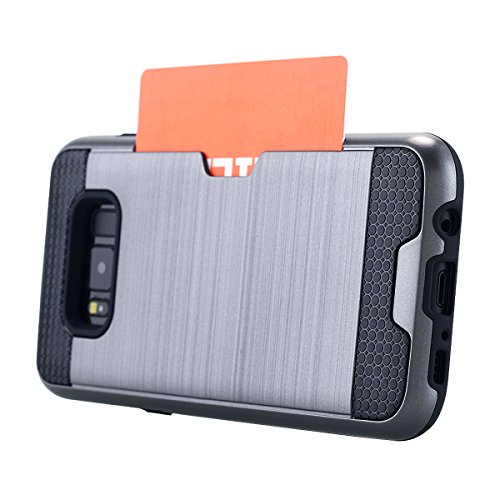 Custodia Galaxy S8 Plus,Galaxy S8 Plus Case, Snewill Credit Card Holder Slot Case Shock Absorbing Dual Layer Brush Matte Case Cover for Samsung Galaxy S8 Plus - Grey
