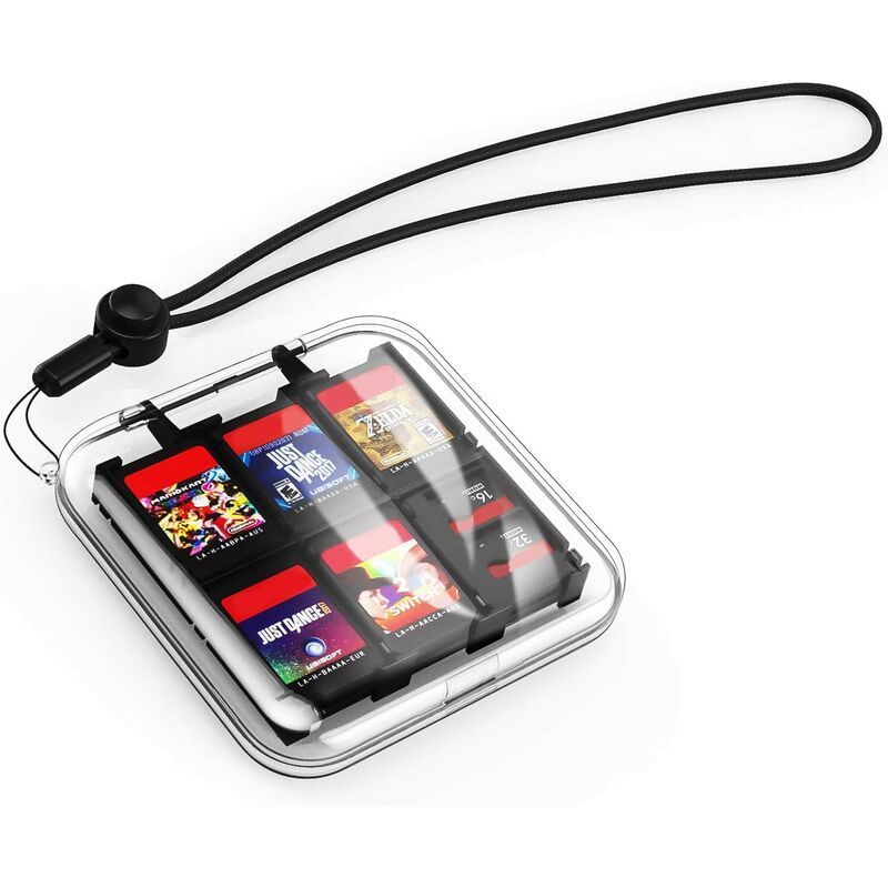 SHELL DUREVOLE - Il guscio è realizzato con materiali PC premium resistenti. Può proteggere le carte da gioco da graffi accidentali, schizzi e polvere. DESIGN TRASPARENTE - Progettato come una scatola trasparente, abbastanza chiara da vedere gli slot interni per le carte da gioco. GRANDE CAPACITÀ - Con una grande capacità, che può contenere facilmente 12 schede di gioco o 11 schede di gioco 2 schede SD. La resistenza adeguata delle fessure impedisce la caduta delle carte da gioco. TRAVEL-FRIENDLY - È piccolo e leggero, dotato di cordino, può essere appeso in uno zaino, in una valigia, ecc. Molto comodo da portare con te ovunque.