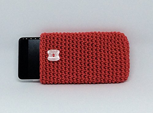 Custodia glamour per smartphone/ iPhone - realizzata a mano con uncinetto - rosso corallo