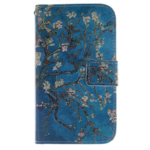 LG G2 Mini Custodia, GOCDLJ Copertura di Ccuoio Cover in PU Dipinto Sintetica Ecopelle Pelle Guscio per LG G2 Mini Protezione Caso Ultra Sottile shell protettivi Bumper Covers Chiusura Magnetica Snap-on ID Carte di Credito Slot Borsa Protettiva Flip Cases Libro Stand insiemi di telefono Silicone Interno Case + Braccialetti Rossi di Stile Cinese Disegno Albero di Albicocca Blu