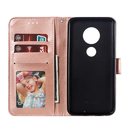 Moto G7 Custodia Flip, Goffratura Design Case in PU Pelle Internamente Silicone TPU Cover Portafoglio Cover Premium Custodia per Motorola Moto G7 / Moto G7 Plus. LD Mandala Rose Gold