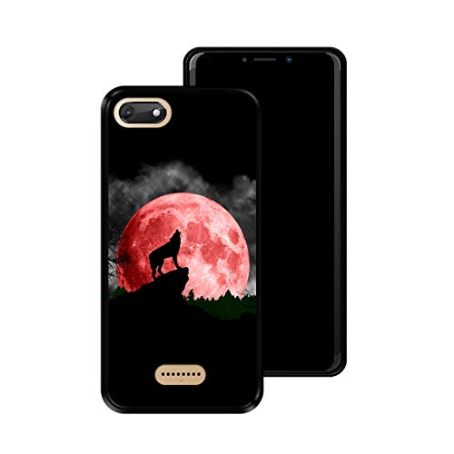 Custodia per [ Wiko Harry 2 ] Disegni [ Luna Rossa, Lupo Che Ulula ] Cover Guscio in Silicone Flessibile Nero TPU