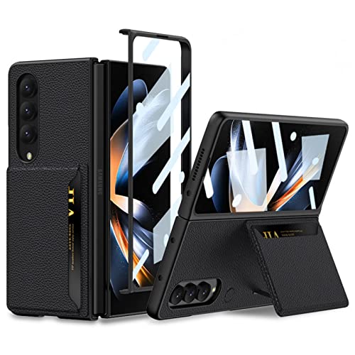Custodia Card Holder + Glass Film Plain Pelle Z Fold4 Kickstand Cover Slim Case Bumper Business Armor Compatibile per Samsung Galaxy Z Fold4(5)