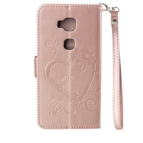 Custodia Honor 5X,Honor 5X Cover,Cozy Hut® Custodia Huawei Honor 5X con Strap, Huawei Honor 5X Flip Custodia Cover Case, Creative Disegno stampa stile del libro Portafoglio Cover Case in PU Cuoio Wallet Caso copertina con funzione di supporto e morbido TPU cassa interna per Huawei Honor 5X - Rose Gold