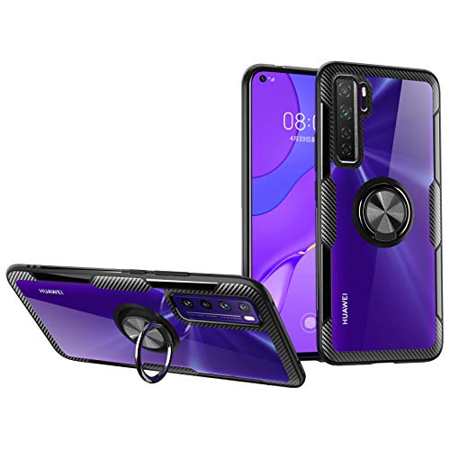 Custodia per HUAWEI P40 Lite 5G - Duro Acrilico Trasparente Resistente ai Graffi [Supporto ad Anello Rotante] [Adsorbimento Magnetico Applicabile] (P40 Lite 5G, Nero)