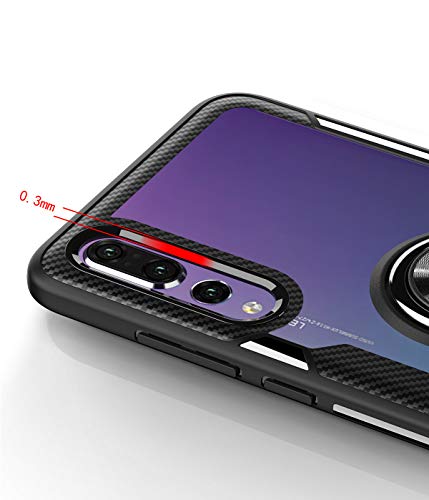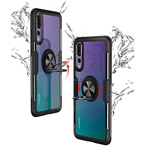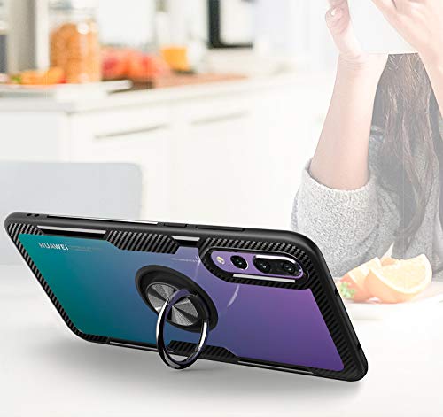 Custodia per HUAWEI P20 Pro - Duro Acrilico Trasparente [Supporto ad Anello Rotante] [Adsorbimento Magnetico Applicabile] (P20 Pro, Nero)