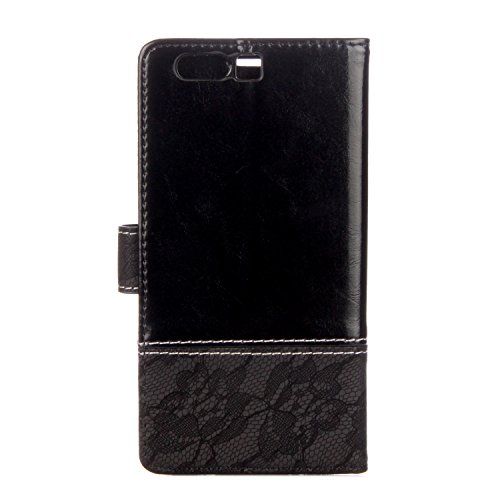 Custodia Huawei P10 Plus Antiurto, Huawei P10 Plus Cover Originale in PU Pelle, Ekakashop Lace Pattern Lusso Flip PU Leather Portafoglio/ Wallet/ Libro Stile Caso con Porta Carte di Credito e Chiusura Magnetica Doppio-colore Cucitura Pizzo Progettare Custodia Protettiva Shell Case Cover per Huawei P10 Plus + 1x Kickstand (Colore casuale), Nera Nera