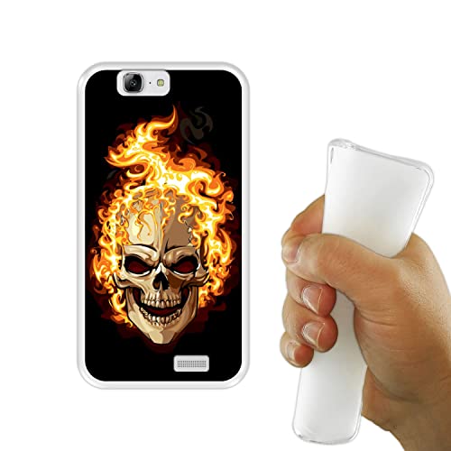 Custodia per [ Huawei Ascend G7 ] Disegni [ Cranio ardente ] Cover Guscio in Silicone Flessibile Transparente TPU