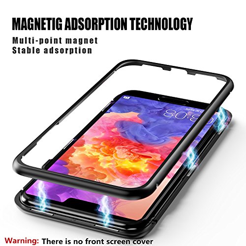 Custodia per Huawei P20 Pro, Custodia ad Assorbimento Magnetico ZHIKE Montatura in Metallo Ultra Sottile Vetro temperato con Cover Magnetica Integrata per Huawei P20 Pro (Nero Trasparente)