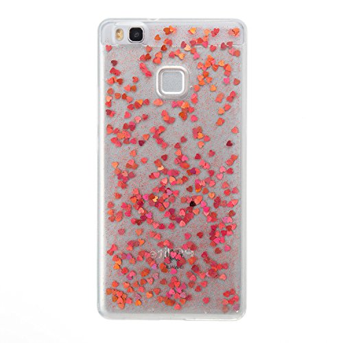 Custodia Huawei P9 Lite Brillantini,Custodia Huawei P9 Lite Cover Rigida,Glitter Oro Rosa Bling Sparky Ultra Sottile Copertura Flessibile Morbida Soft Silicone TPU Gel Trasparente con Copertura Piccolo Amore Design Bumper Respingente Anti-Scratch Protezione Cover per Huawei P9 Lite+ 1 Argento Stilo Penna + 1 Polvere Spina.-Bling Oro Rosa