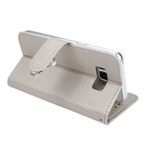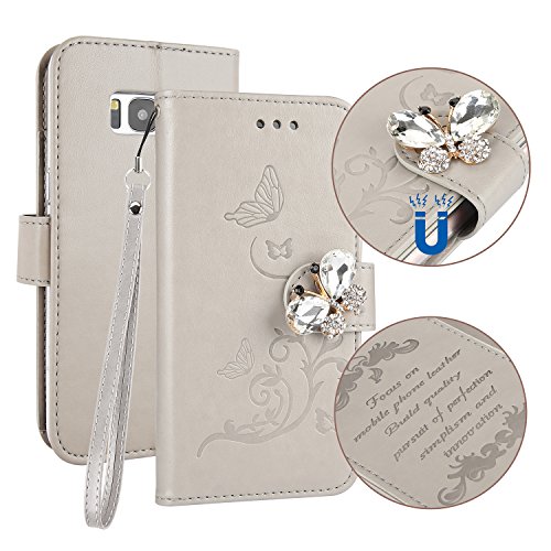 Custodia per Huawei P10 Lite Brillantini Strass Farfalla, Girlyard Glitter Fashion Portafoglio Farfalle Modello Disegni Cover in Pelle Flip Libro Wallet Case Pieghevole Supporto Antiurto Morbido Magnetico Protettivo per Huawei P10 Lite [Grigio] Bling Custodia con Pellicola Protettiva e Cordone