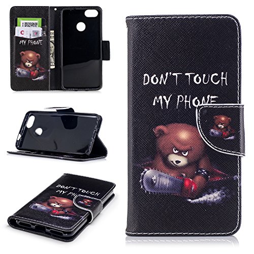 IJIA Custodia per Huawei Y6 PRO 2017 / Huawei P9 Lite Mini (5.0") Chainsaw Orso (Don't Touch My Phone) TPU + PU Pelle Silicone Slot Caso per Portafoglio Fessura per Carta di Credito Cover