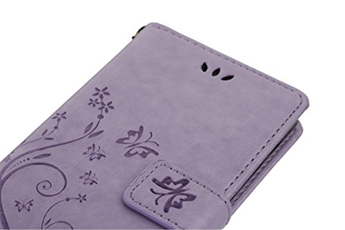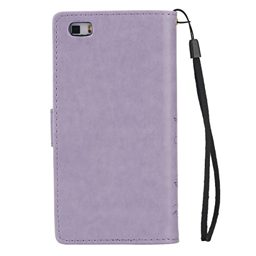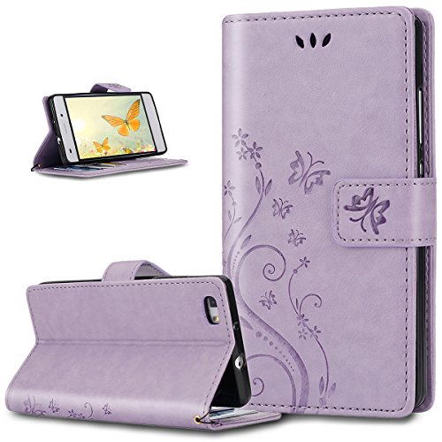 Custodia Huawei P8 Lite,Cover Huawei P8 Lite,ikasus Goffratura Arts Farfalla Fiore Immagine Flip Cover Portafoglio PU Pelle Protective Wallet Stand Custodia Cover per Huawei P8 Lite,Viola chiaro