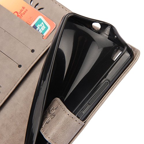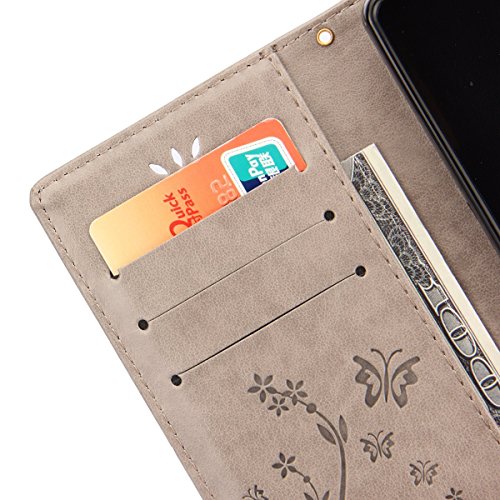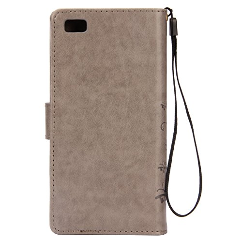 Custodia Huawei P8 Lite,Cover Huawei P8 Lite,ikasus Goffratura Arts Farfalla Fiore Immagine Flip Cover Portafoglio PU Pelle Protective Wallet Stand Custodia Cover per Huawei P8 Lite,Grigio