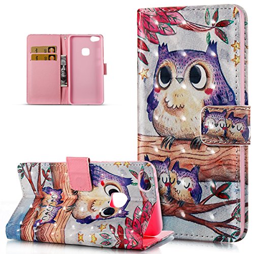 Custodia Huawei P10 Lite,Huawei P10 Lite Cover,Huawei P10 Lite Custodia Cover [PU Leather] [Shock-Absorption] Protettiva dito Custodia Cover per Huawei P10 Lite,Cover Huawei P10 Lite,Gufo dell'albero