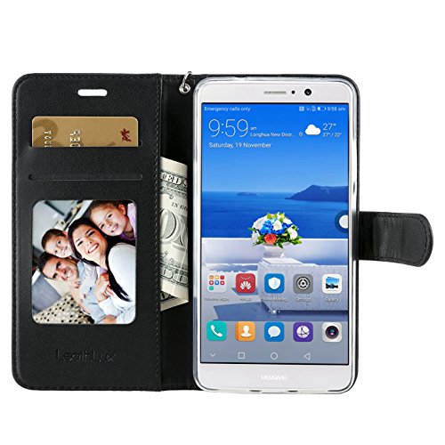 Custodia Huawei Mate 9 Cover Nero, Minana Premium Puro Colore Modello Design Con Cinturino da Polso Magnetico Snap-on Book style Internamente Trasparente Silicone TPU Custodie Case in pelle Protettiva Flip Caso Portafoglio Custodia per Huawei Mate 9