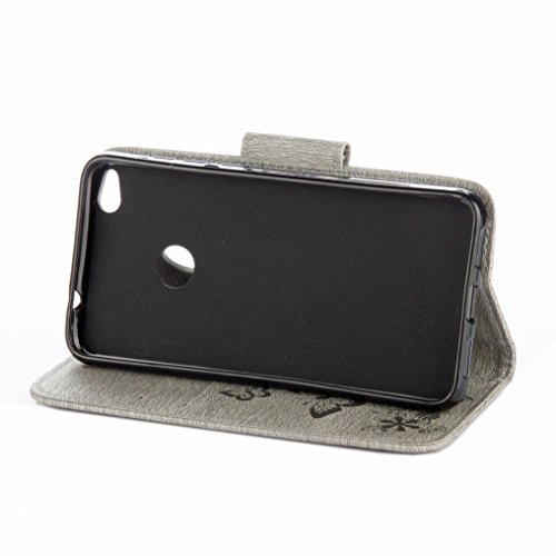 Custodia per Huawei P8 Lite (2017) Cover Case, Ougger Fiore Farfalla Portafoglio PU Pelle Magnetico Morbido Silicone Flip Protettivo Gomma Custodie con Slot per Schede (Grigio)