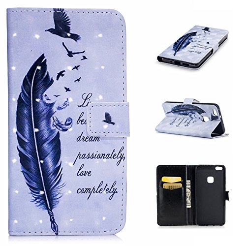 Custodia per Huawei P10 Lite,Cover Huawei P10 Lite Pelle Custodia,Uposao Elegante Creativo 3D Design Dipinto Modello Custodia in PU Pelle con Kickstand Chiusura Magnetica Custodia-(Piuma)