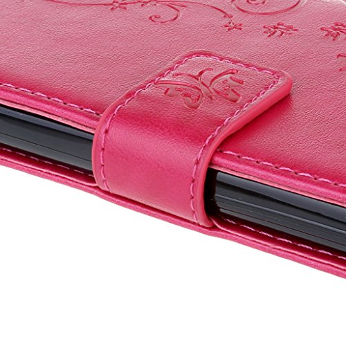 Custodia Huawei P10 Lite Cover Rosso, Leathlux Retro Fiore Modello Design Con Cinturino da Polso Magnetico Snap-on Book style Internamente Silicone TPU Custodie Case in pelle Protettiva Flip Cover per Huawei P10 Lite 5.2"