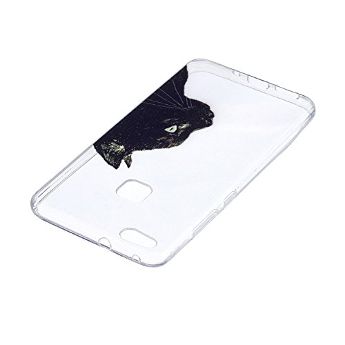COZY HUT Custodia Huawei P10 Lite Cover, Silicone Trasparente Morbida Clear Gel Caso, Ultra Slim Antiurto Anti-Graffio Bumper Case Cover per Huawei P10 Lite - Gatto Pensive