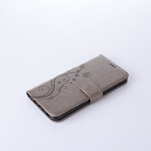 Custodia Huawei P10 plus,Case Cover per Huawei P10 plus, Ukayfe Luxury Puro Colore Modello Goffratura Vines Fiore e Farfalla Cristallo 3D Design Bumper Slim Folio Protectiva Lussuosa Custodia Cover [PU Leather] [Shock-Absorption] Protettiva Portafoglio Cover Custodia con Super Sottile Trasparente TPU Interno Case e Porta carte di credito Portafoglio Custodia Protettiva Cover Copertura Tutta Potente per Huawei P10 plus-Grigio 1#