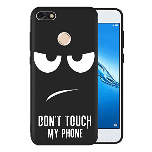 IJIA Custodia per Huawei Y6 PRO 2017 / Enjoy 7 / Huawei P9 Lite Mini Puro Nero Don't Touch My Phone TPU Silicone Custodia Bumper Protettiva Case Cover
