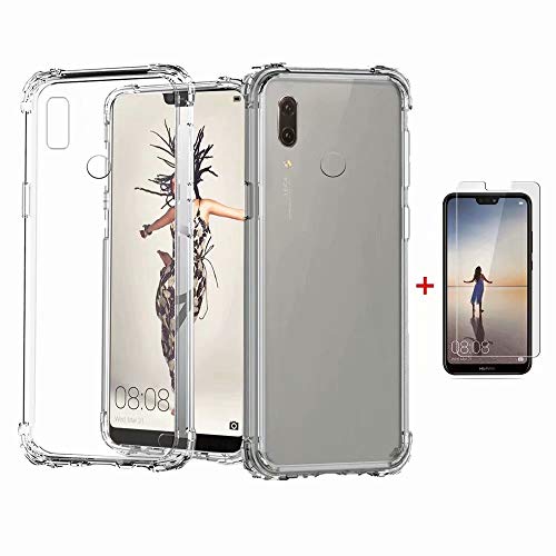 Custodia Huawei P20 Lite Fanxwu Ultra Slim Trasparente Cristallo Morbido TPU Silicone [2*Pellicola Vetro Temperato] Air Cushion Design Protezione Antigraffio Cover