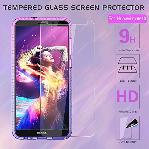 LeYi Custodia per Huawei Mate 10 Lite Glitter Cover con Vetro Temperato,Brillantini Diamond Silicone Sabbie Mobili Bumper Case per Custodie Huawei Mate 10 Lite Donna ZX Purple Blue Gradient