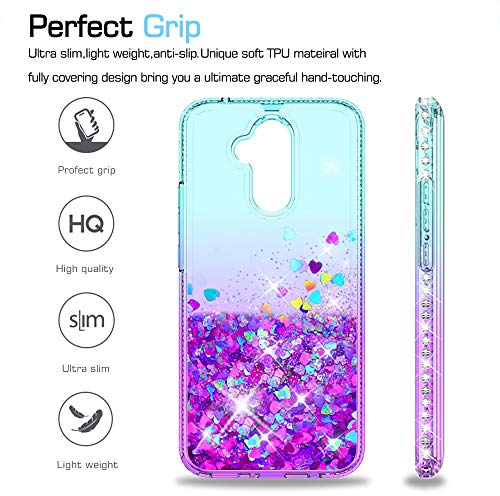 LeYi Custodia Huawei Mate 20 Lite Glitter Cover con Vetro Temperato [2 Pack],Brillantini Diamond Sabbie Mobili Bumper Case Custodie per Huawei Mate 20 Lite Donna ZX Turquoise Purple Gradient
