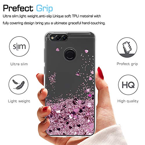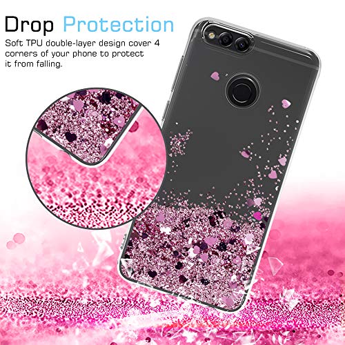 LeYi Custodia Huawei Honor 7X Glitter Cover con HD Pellicola,Brillantini Trasparente Silicone Gel Liquido Sabbie Mobili Bumper TPU Case per Huawei Honor 7X Telefonino Donna ZX Rose Gold