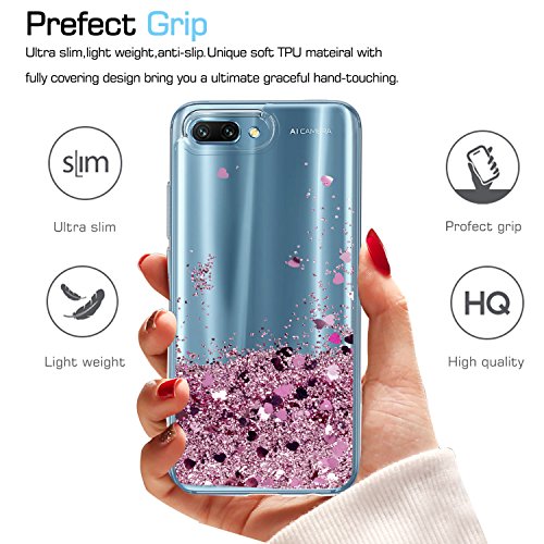 LeYi Custodia Huawei Honor 10 Glitter Cover con HD Pellicola,Brillantini Trasparente Silicone Gel Liquido Sabbie Mobili Bumper TPU Case per Huawei Honor 10 Donna ZX Rose Gold