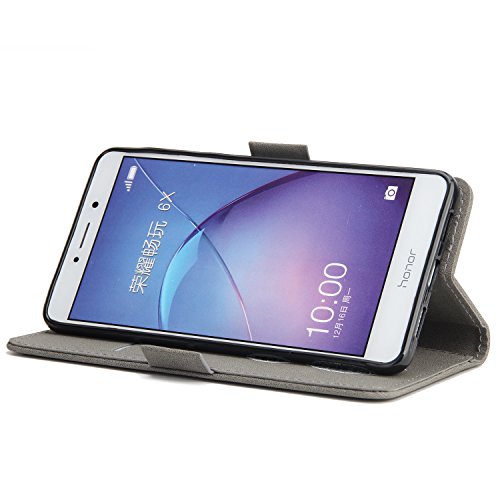 Custodia per Huawei Honor 6X, ISAKEN Custodia in Sbalzato Embossed Design PU Pelle Book Folding Case Glitter Bling Cover, Supporto Stand e Porta Carte Integrati Portafoglio Flip Cover con Chiusura Magnetica Shock-Absorption Protezione Caso - Dream: grigio