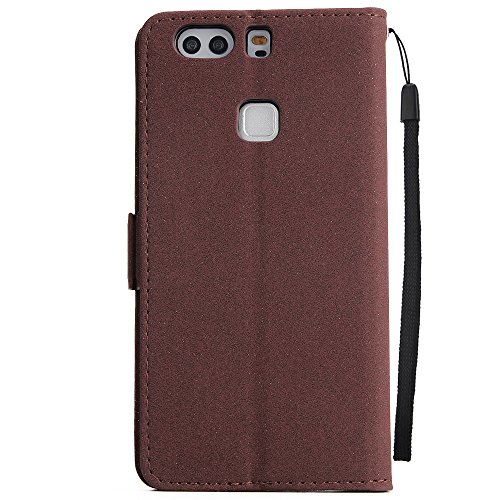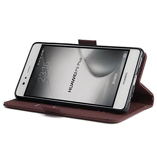 Custodia per Huawei P9 Plus, ISAKEN Custodia in Sbalzato Embossed Design PU Pelle Book Folding Case Glitter Bling Cover, Supporto Stand e Porta Carte Integrati Portafoglio Flip Cover per Huawei P9 Plus con Chiusura Magnetica Shock-Absorption Protezione Caso - Dream: marrone