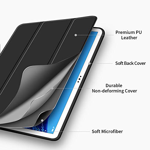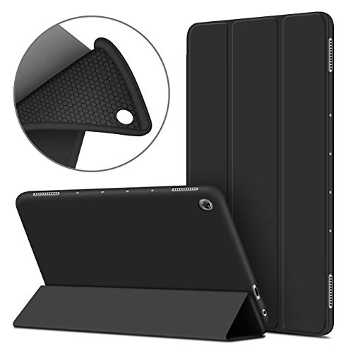 Custodia per Huawei MediaPad M5 Lite 10.1 2018, VAGHVEO Elevato Morbido TPU Silicone Sottile Smart Cover Case Pelle PU Stand Flip Copertina per Huawei M5 Lite 10.1 Pollice Tavoletta, Nero_01