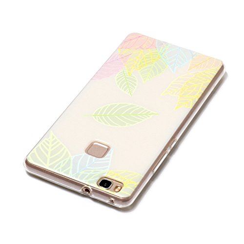 Custodia per Huawei P9 Lite morbido,Herzzer Crystal Creativo Elegante Unico Molto Ultra Sottile Clear Cristallo sottile Silicone TPU Gel flessibile case cover, Protettivo Skin in Liscio Smooth Toccare Anti scratch di Bumper Shell caso per Huawei P9 Lite (Natura foglia di albero) + 1 x Gratuito Basamento Telefono Giallo Regolabile + 1 x Gratuito Pennino Giallo