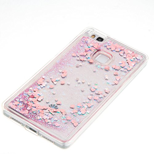 Custodia per HUAWEI P9LITE SKYXD trasparente del telefono cellulare custodia graffiatura della copertura lucida fetta di spostamento di sabbia sottile di protezione ShockProof anti per HUAWEI P9LITE + Uno strass spina della polvere + 1x Touch Pen (Rosa)