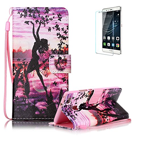 Custodia Huawei P9 Lite in Pelle,Funyye Elfo Ragazza Disegni Elegante Libro Portafoglio Cover e Pellicola Protettiva Copertura [CordinoiphoneSupporto StandiphonePorta CarteiphoneChiusura Magnetica] Protettivo Caso Shell Skin Bumper Per Huawei P9 Lite Flip Wallet Leather Case With Hand Strap Lanyard Screen Protector