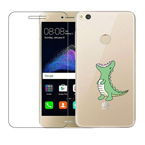 Custodia Huawei P8 Lite 2017 [Pellicola Protettiva in Vetro Temperato], Bestsky Morbida di TPU Gomma Antiurto Cristallo Trasparente Cover con Design per Huawei P8 Lite 2017, Crocodile