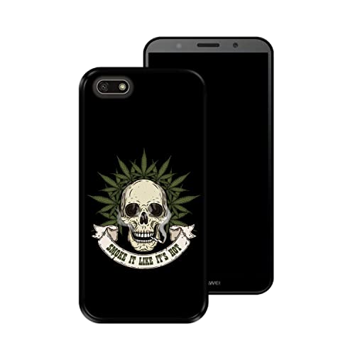 Custodia per [ Huawei Y5 2018 - Y5 Prime 2018 - Honor 7S ] Disegni [ Cranio con Marijuana, Smoke it Like It's Hot ] Cover Guscio in Silicone Flessibile Nero TPU