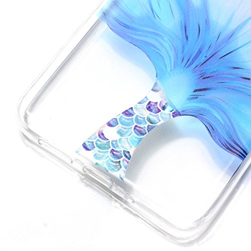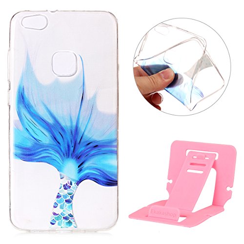 Custodia per Huawei P10 Lite Silicone, Cover Huawei P10 Lite Trasparente, Ekakashop Ragazza Ragazzo Colorato Blue Fishtail Pattern Ultra Slim Trasparente Cover in TPU del gel Silicone Gomma morbido Antiurto protettiva copertura posteriore della cassa del respingente per la Huawei P10 Lite + 1x Ekakashop Kickstand (colore casuale)
