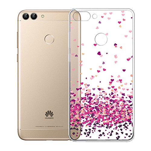 IJIA 2 Pack Custodia per Huawei P Smart/Enjoy 7S Trasparente TPU Silicone Morbido Protettivo Coperchio Skin Custodia Bumper Protettiva Case Cover per Huawei P Smart/Enjoy 7S (5.65") (WM85+WM92)