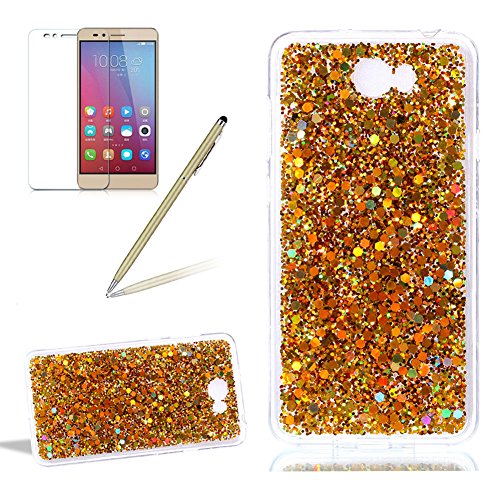 Custodia per Huawei Y5 ii Sparkling Glitter - Girlyard Morbida Silicone Case Glitter Bling Opaco Brillantini Luminosa Lucido Disegni Puro Paillettes Antiurto Sottile per Huawei Y5 2 Coperture Protettivo Cover con Trasparente Pellicola Protettiva e Penna (Giallo)