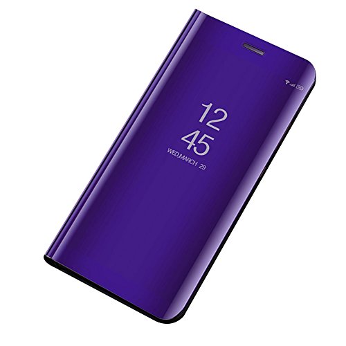 Custodia Huawei Mate 10 Lite Specchio Portafoglio Libro Trasparente Cover Flip Pelle Verticale Pieghevole Rigida Electroplate Antiscivolo AntiGraffio Guscio con Supporto per Huawei Mate 10 Lite-Viola