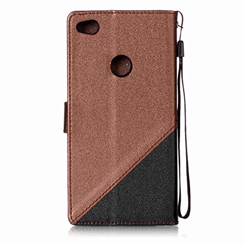 Custodia Huawei P8 lite 2017,Ukayfe Stitching Colore Flip Case Cover per Huawei P8 lite 2017 in pelle PU,Huawei P8 lite 2017 Lussuosa Astuccio Custodia Cover [PU Leather] [Shock-Absorption] Protettiva Portafoglio Cover Custodia Giuntura da Polso Foglio con Super Sottile Morbido Silicone TPU Interno Case e Porta carte di credito Portafoglio Custodia Protettiva Cover Copertura Tutta Potente per Huawei P8 lite 2017-Nero + Marrone