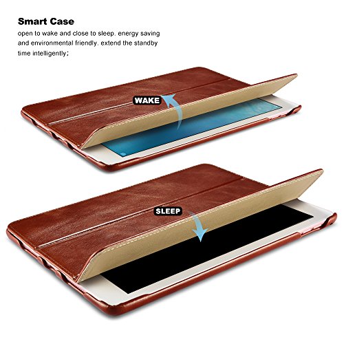 Custodia iPad Pro 12,9 2017, Icarer Vera Pelle Custodia Ultra Sottile di Protezione Custodia a Libro Auto Wake and Sleep Funzione di Visione Angolo Regolabile per iPad Pro 12,9 Pollice 2017 (Marrone)