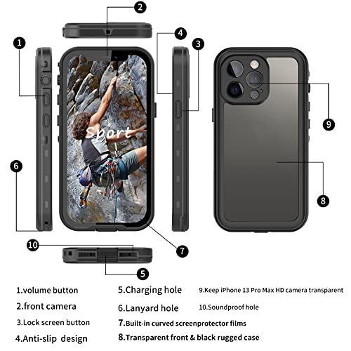 BDIG Custodia Impermeabile iPhone 13 Pro Max, IP68 Certificato Waterproof Cover Slim Antiurto Antineve Antipolvere AntiGraffio Subacquea Caso Full Protezione Impermeabile Custodia iPhone 13 Promax