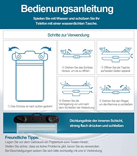 【Compatibilità universale】la custodia impermeabile per telefoni cellulari è abbastanza grande da contenere telefoni cellulari fino a 7,0 pollici, ad es. Samsung Galaxy S23+ S20+ S9+ A34 A73 Note 20 Ultra, iPhone 11 12 13 14 Pro Max, Xi
