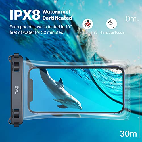 YOSH TPU Custodia Impermeabile Smartphone [2 Pezzi] IPX8 cover subacquea, 7.5 Pollici porta cellulare impermeabile mare per Iphone 12 13 14 Pro Max xs mini 8 plus Samsung S22 S23 S20 Huawei Xiaomi