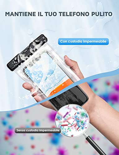 AMPIA UNIVERSALITÀ: la custodia impermeabile smartphone può adattarsi a tutti gli smartphone di grandi dimensioni sotto i 7 pollici con una custodia per telefono. Compatibile con iPhone 13 / 13 Pro Max / 12 Pro Max / 12 Pro / 12 / 11 Pro Max / 11 Pro / 11 / SE / Xs Max / Xs / Xr / X / 8 Plus / 8 / 7 Plus / 7, Galaxy S21 / S20 / S10 Plus / S9 / Note 9 / 10 e altri.